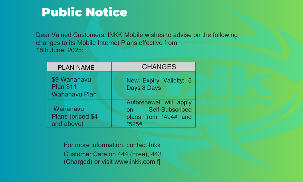 Inkk Mobile Internet Plans is a promotional offer. Offer valid until further notice. Standard ad hoc charge of 3c per MB applies outside data bundles. To use Inkk 4G service, customers are required to have an Inkk 4G SIM card, located in an Inkk 4G coverage area and have a 4G enabled device. For more information, please call customer care on 443 (Premium Charged Line) or 444 (Free Line for Prepay).